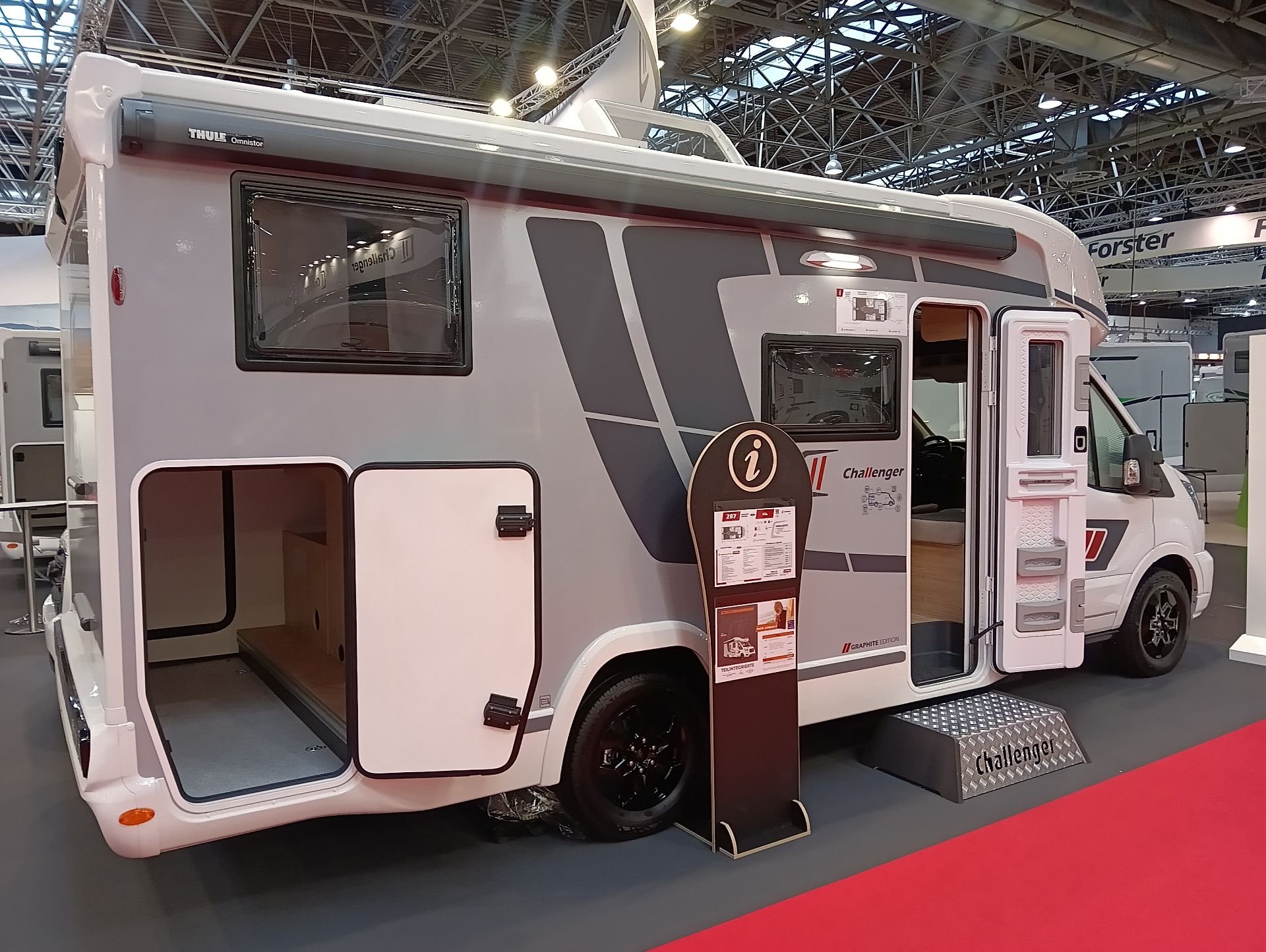 Neufahrzeug Teilintegrierter Challenger 287 Graphite Edition 6,99m Automatik 165PS der Saison 2026 komplett ausgestattet mit Geschirr, Stühlen, Tisch, Kaffeemaschine, Bettwäsche (ohne Decken und Kissen), elektrisches Hubbett vorne und Längsbetten mit Bettverbreiterung hinten, Kompressorkühlschrank, Schwenkbad, große Heckgarage, Markise, Technikzubehör, 20 Liter Frischwasser, Toilettenchemie und Papier, Gas, 200 Freikilometer / Tag, 5 Sitzplätze und 4-5 Schlafplätze (max. 4 Erwachsene), Lithium Batterie 100Ah, Solaranlage, Fahrradträger usw. Sehr geräumiges Fahrzeug mit 6,99m Länge. Hinweise: Fahrer muss mindestens 21 Jahre alt sein und 2 Jahre den Führerschein Klasse B besitzen. Haustiere sind nicht erlaubt. Die Welt ist zu schön, um zu Hause zu bleiben. Pack deine Träume ein und mach dich bereit für den nächsten Roadtrip. Unser geräumiger Teilintegrierter bietet Platz für bis zu 5 Personen und ist der perfekte Begleiter für entspannte und unvergessliche Reisen. Mit allem ausgestattet, was du benötigst, kannst du einfach einsteigen, losfahren und den Moment genießen. Ob du eine aufregende Abenteuerreise planst oder dem Alltag entfliehen möchtest, unser Wohnmobil erfüllt all deine Wünsche. Es ist mit 5 Sitzplätzen und 4-5 Schlafplätzen ausgestattet. Im Heck befinden sich 2 Längsbetten mit Bettverbreiterung als große Liegefläche für 2-3 Personen. Vorne finden 2 Personen im großzügigen elektrischen Hubbett Platz. Für ein Kleinkind bietet sich die optionale CampSleep Matratze für das Fahrerhaus an. |