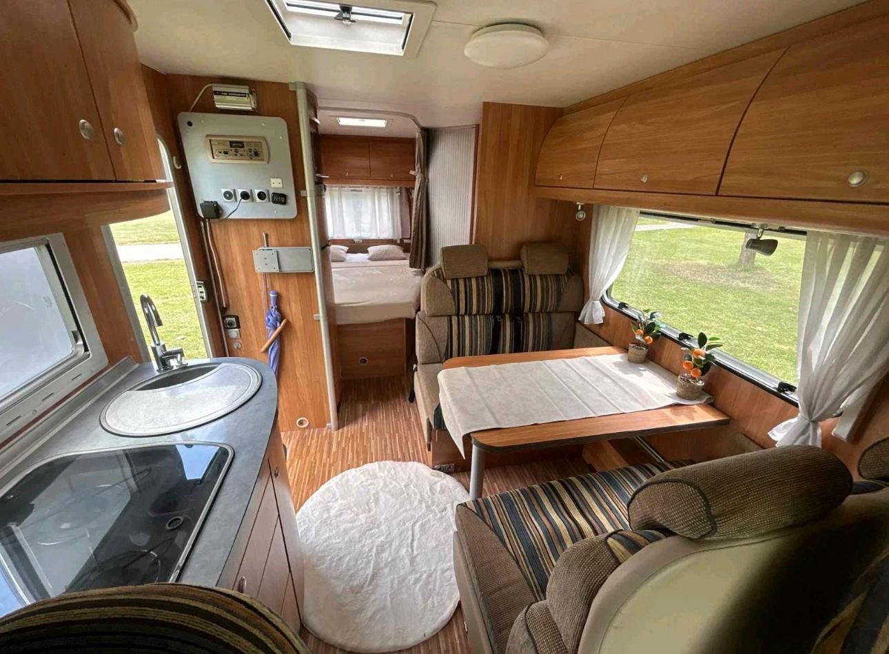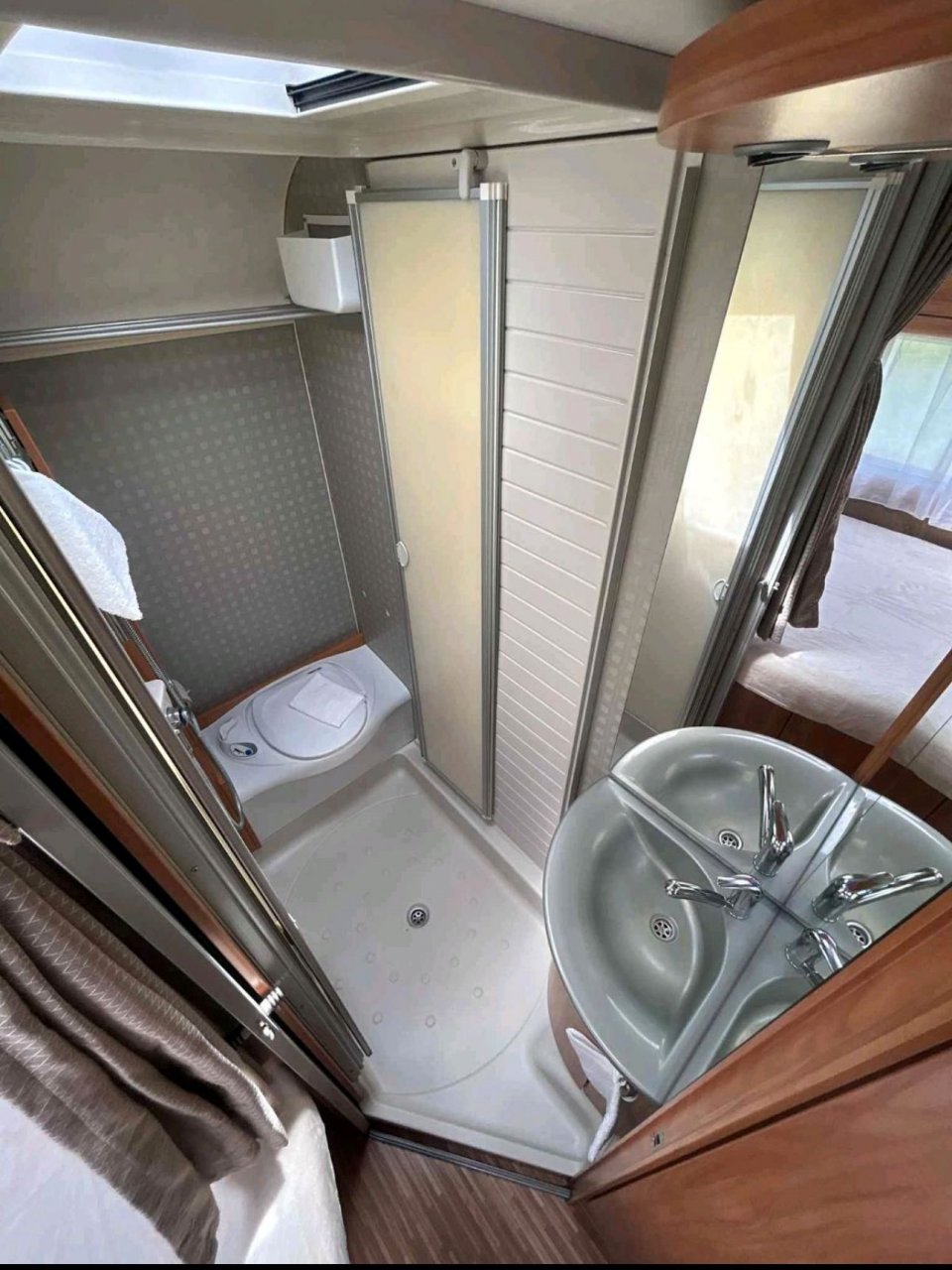 Innenausstattung Festbett im Heck mit Holzlattenrost, leicht zugänglich Zusatzbett aus umgebauter Sitzgruppe, ebenfalls sehr bequem Geräumiger Essbereich mit Sitzgruppe Küche mit: 3‑Flammen‑Gaskocher Große Spüle Kühlschrank mit Gefrierfach Viel Stauraum in Schränken und Schubladen Großes Bad mit separater, trennbarer Dusche Gasheizung für wohlige Wärme Clevere Stauraumlösungen innen & außen Außenausstattung Solarpanel für autarkes Reisen Große Außenmarkise Fahrradträger 2 Gasflaschen inklusive Rückfahrkamera |
