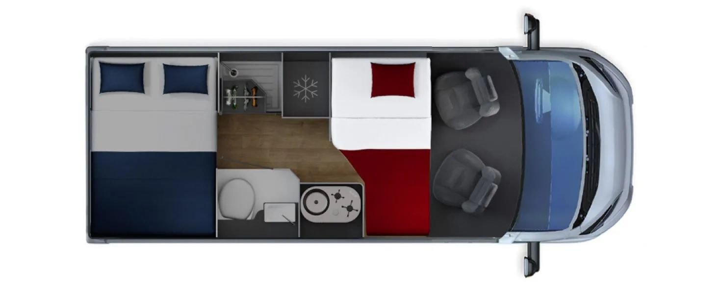 Der GiottiVAN 60T Kastenwagen ist ein kompaktes Modell mit 2 (3) Schlafplätzen. ... das maximale an Komfort auf kleinstem Raum.... Trotz seiner Abmaße von 5,99m fehlt dem GiottiVAN 60T nichts. Der GiottiVAN 60T ist das perfekte Städtetour Wohnmobil bzw Kastenwagen für 2 Personen. Selbstverständlich darf ein geräumiger Kühlschrank nicht fehlen. Mit dem GiottiVAN sind Sie überall unterwegs gut aufgestellt. Sogar eine separate Dusche mit einem herausschwenkbaren Kleiderschrank ist auf einer Länge von nur 5,99 Meter untergebracht. Die Tür des Bades lässt sich so verstellen, dass Sie hier ein großzügiges Raumbad haben. Über dem großen Querbett befinden sich 5 weitere Schränke, sodass Sie auf nichts verzichten müssen. In der Dinette kann ein weiterer Schlafplatz genutzt werden. Das Fahrzeug verfügt über eine autom. Sat-Anlage, eine Markise und einen Fahrradheckträger für 2 Räder. |