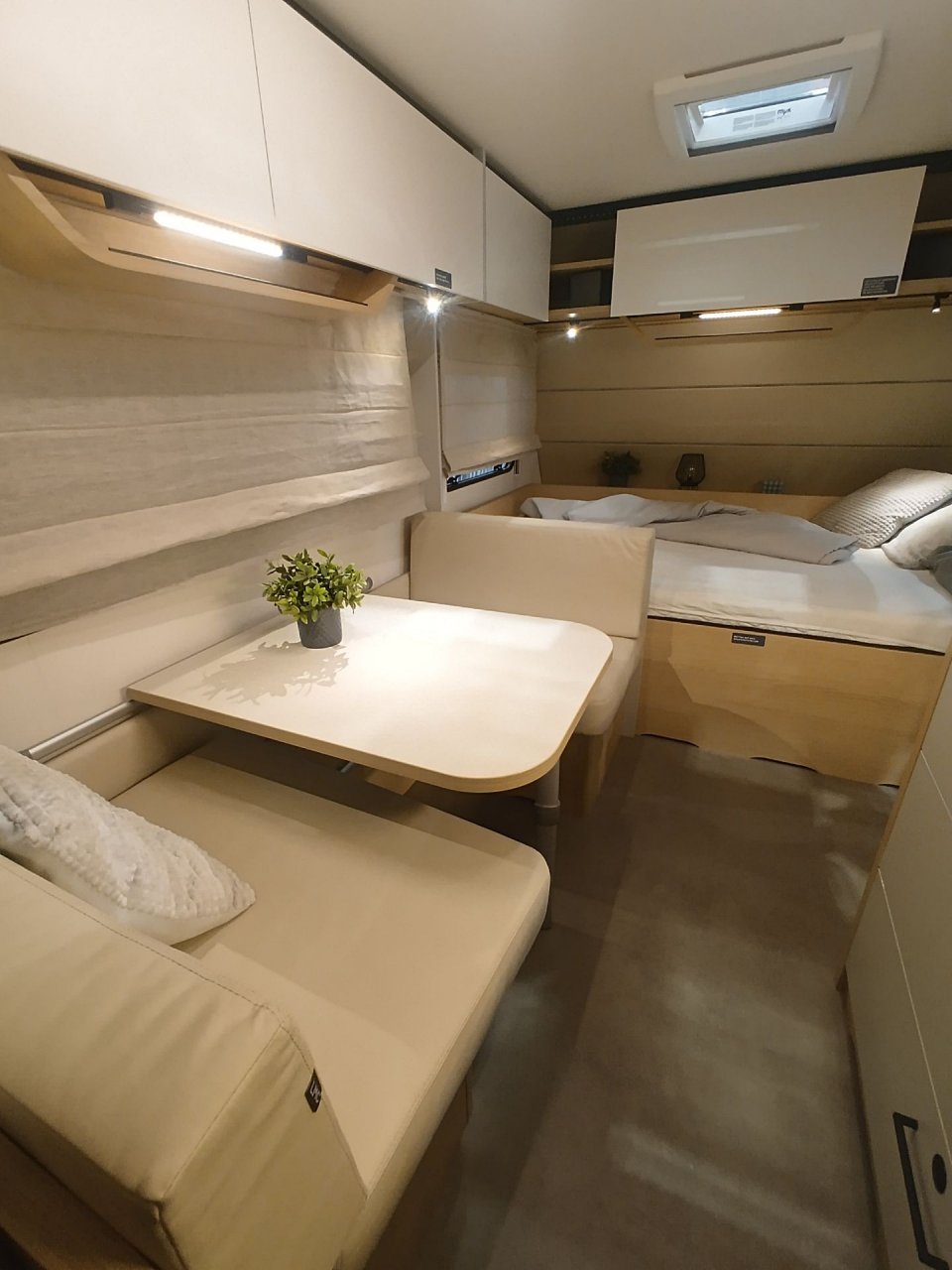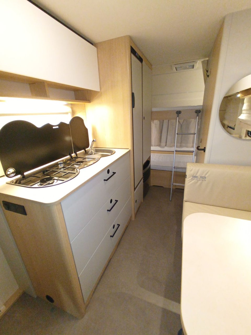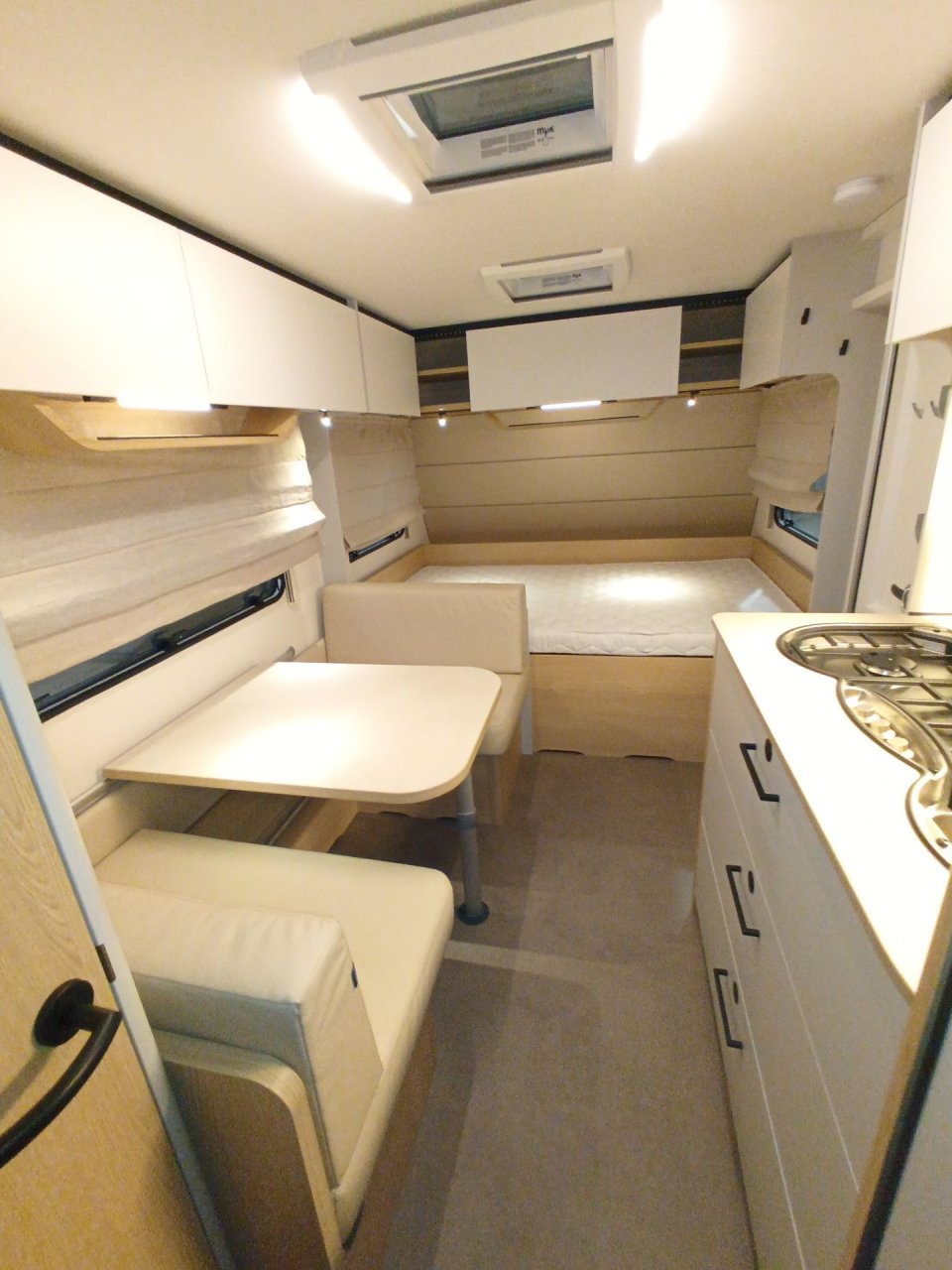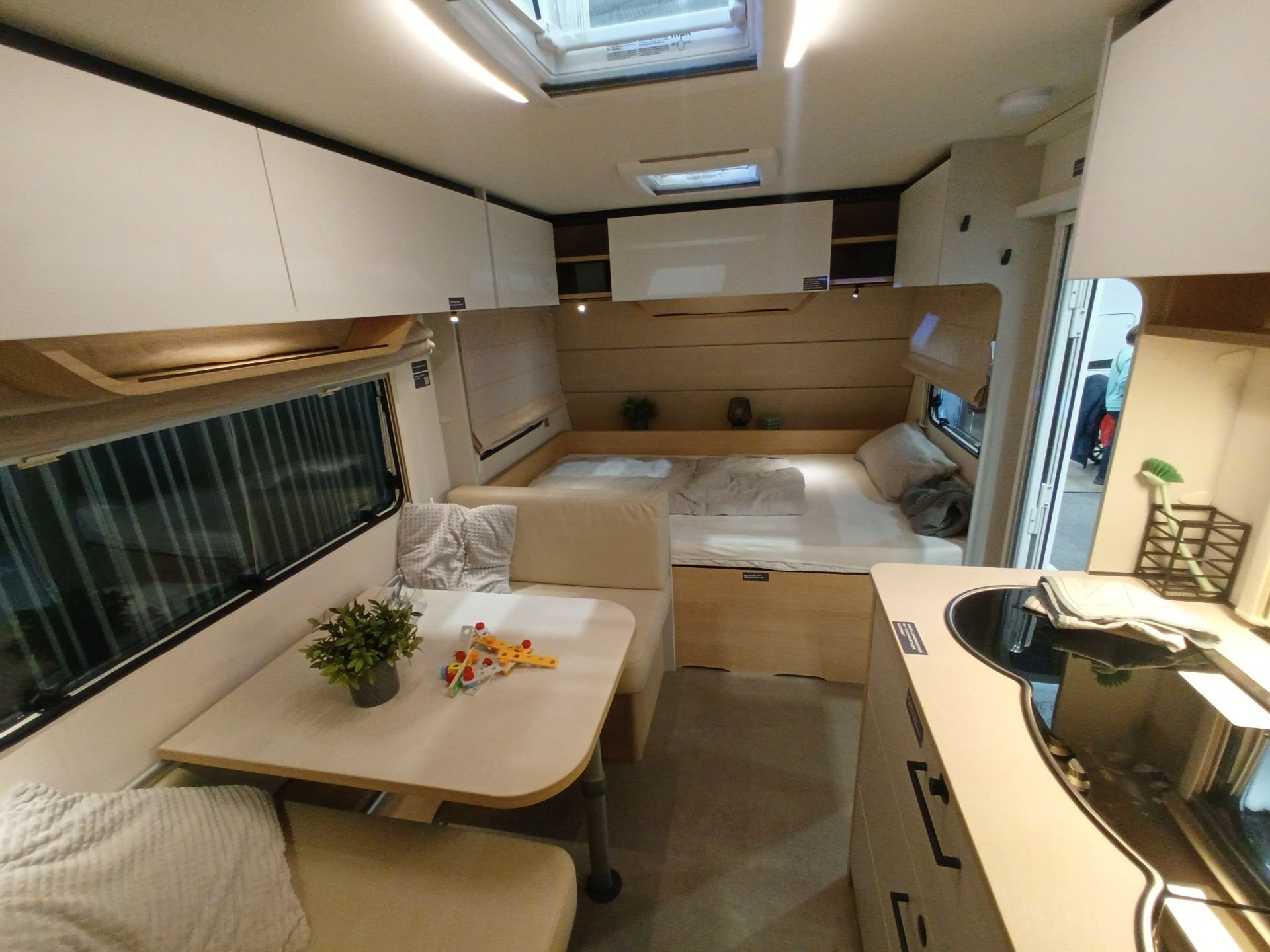 Unser Wohnwagen LMC Style 493K 70 Jahre Sondermodell ist ein sehr geräumiger und doch handlicher Wohnwagen für bis zu 5 Personen. Er hat eine Gesamtlänge 7,19m, Breite 2,33m und eine Aufbaulänge 5,21m innen und hat ein zul Gesamtgewicht von 1700kg bei einem Leergewicht von 1400kg. Neufahrzeug Saison 2026 komplett ausgestattet mit Geschirr, Stühlen, Tisch, Kaffeemaschine, Bettwäsche (ohne Decken und Kissen), Querbett Bug 208x135cm, Umbaubare Dinette 194x86cm, 2x Stockbett im Heck 210x80cm, Kompressorkühlschrank, WC, Elektrowarmwasserboiler, große Heckgarage (Stockbett unten hochgeklappt), Technikzubehör, 30 Liter Frischwassertank, 20 Liter Grauwasserbehälter, Toilettenchemie und Papier, Gas, Rauchmelder, AL-KO Antischlingerkupplung, usw. Optional kann ein Sonnensegel / Vorzelt gebucht werden. |