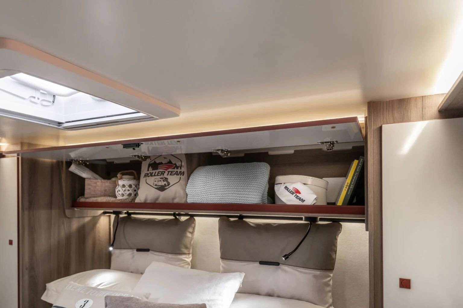 Modell 2026 - RollerTeam Kronos 266 ist ein Teilintegrierter der Luxusklasse. Dieses geräumige Wohnmobil bietet umfangreichen Komfort und Flexibilität für Ihren nächsten Urlaub. Ausgestattet ist das Fahrzeug mit einem Doppelbett im Heckbereich, Hubbett über der Dinette, Dachklimaanlage, abtrennbares Raumbad mit sep. Dusche, geräumiger Heckgarage etc. Fahrgestell: - Ford Transit 165 PS heavy Duty - Automatikgetriebe - Abmaße: Länge 745cm, Höhe Außen 320cm, Höhe innen 204cm, Breite 235cm - Heckgarage (120cm x 90cm) - Doppelairbags - Captain Chair Sitze (Fahrer und Beifahrer) - ISOFIX Kindersitzbefestigung - Tempomat - Abstandstempomat, Fahrspurassistent - manuelle Klimaanlage - ABS, ESP, elektronische Servolenkung, Berganfahrhilfe - elektrische Fensterheber - elektrisch verstellbare Außenspiegel - Tiefrahmenchassis - zul. Gesamtgewicht: 3500 kg - Leergewicht: 2920 kg - Anhängekupplung fest (2000kg Anhängelast) - 4 eingetragene Sitzplätze - drehbare Fahrerhaussitze, höhenverstellbar inkl. Fahrerhaussitzbezüge - Rückfahrkamera - Radio /DAB - 200W Solaranlage mit Regler Wohnen/ Schlafen: - tiefer Einstieg dank integrierter Trittstufe - Außenbeleuchtung - Aufbautür mit Fenster, doppel-verriegelt und mit Zentralverriegelung über Funkfernbedienung - Fenster mit Verdunklungsrollo und Mückengitter - Mückengitter-Schiebetür am Eingang - L-Sitzgruppe - verstellbarer großer Tisch - elektrisches Hubbett vorne (2,03m x 1,35) - Queens- Doppelbett hinten (1,90m x 1,50m) - Kleiderschrank unterhalb Heckbett - Küche mit großen Schubladen, 2-Flamm-Kocher inkl. Glasabdeckung - Edelstahlspüle mit Abdeckung - großer Kühlschrank (135Liter) inkl. Gefrierfach und Getränkebox mit automatischer Energiewahl (12V, 230V, Gas) - Markise (4,5m) - Radträger (4er) - vollautomatische SAT-Antenne - 24" LED TV für Sat-Antenne und Smart TV - Dachklimaanlage fest verbaut (220V) Bad / Dusche: - separates Badezimmer (abtrennbar nach hinten und vorne) - Waschbecken - Utensilienschrank - Dusche mit fester Duschabtrennung - Fenster - Casettentoilette mit SOG WC Entlüfter (keine Chemie) Technik: - TRUMA Combi-Heizung / Warmwasser - hochwertige Druckwasserpumpe - Frisch/ Abwassertank 118/110 Liter - Skyroof vorne - Fahrerhausverdunklung - hochwertiger Wandaufbau aus GFK - XPS Isolation - neutrales Design vom Hersteller, keine Werbeaufkleber - externe Dusche, Anschluß in Heckgarage Servicepauschale / Übergabe / Basiszubehör (einmalig €129,00) - Einweisung des Fahrzeugs bei Übergabe - 2 x Garten/Campingstühle mit stabilen Campingtisch (mehr Stühle als Zusatzausstattung verfügbar) - 2 x 11kg Gasflaschen (eine voll und eine teilgefüllt) - Umfangreiches Campinggeschirr-Set (Melanin) für 4 Personen (Teller, Tassen, Schüsseln, Besteck, Kochtopf, Pfanne, Gläser, Gewürze, Schneidebrett, div. Messer) - Wasserkocher 220V - jeweils frisch gereinigte Spannbettlaken aus hochwertigen Jersey - 3-er Steckdosenverteiler - CEE 230V Camping Kabel Set (für Anschluß am Campingplatz) und 10m Verlängerunskabel - Werkzeugset Basic (Hammer, Zangen, Schraubendreher, Klebeband, Kabelbinder usw) - Auffahrkeil-Set (3-Stufen) mit Wasserwaage - Verstärkte Markisenheringe aus verzinktem Stahl - Gießkanne - Verbandskasten - Signalwesten - Stabile Zubehörkiste Bilder stammen z.T. von der Original Webseite von Roller Team - Fahrzeug wird im Jan 2026 bei uns eintreffen. |