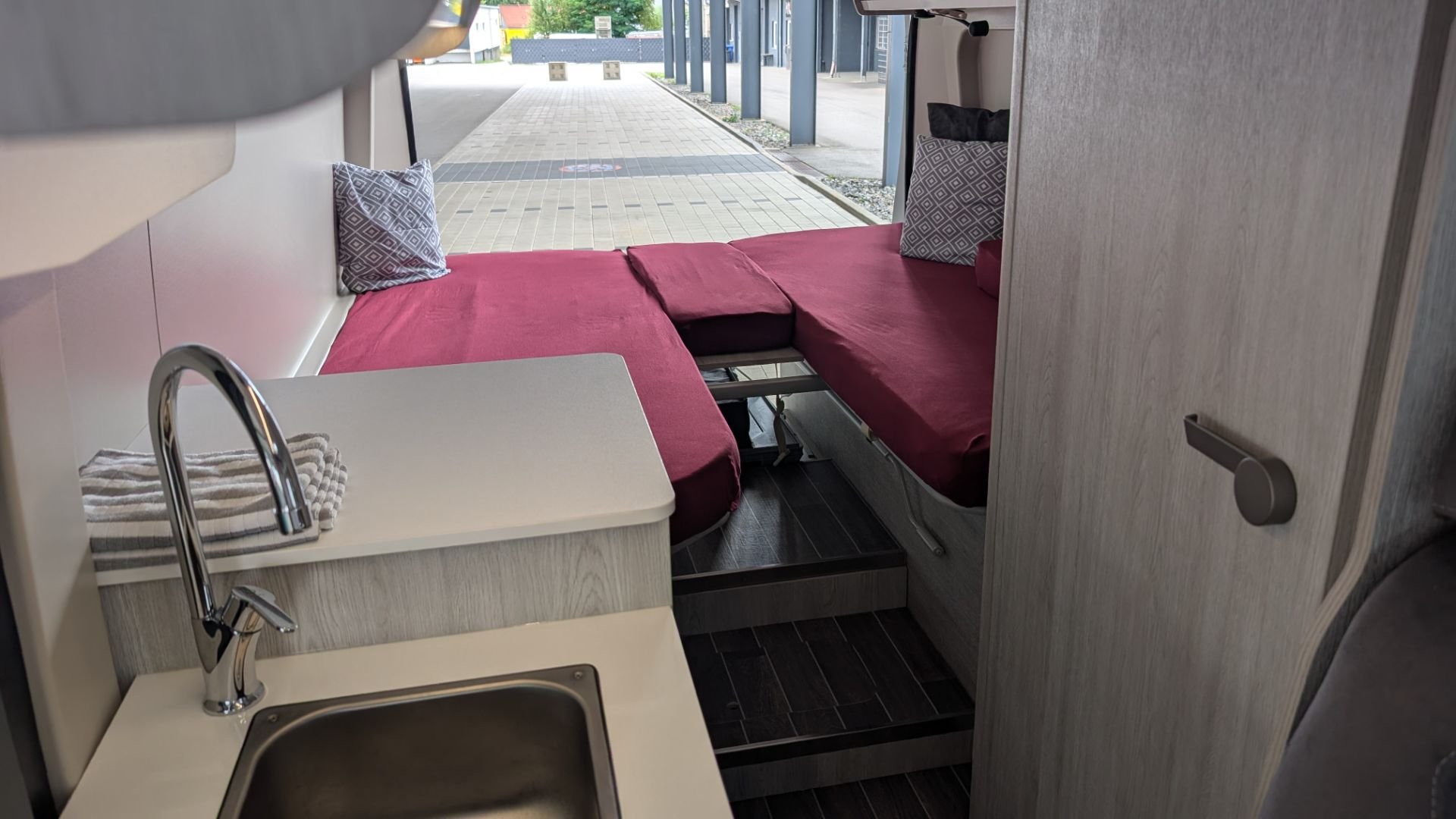 Kompakter Camping Van mit Einzelbetten, AHK und Staubereich