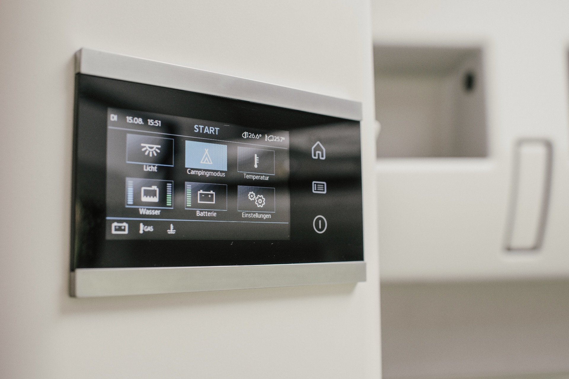 | Fahrzeugausstattung | Heckgarage Lederlenkrad Lichtsensor Markise Multifunktionslenkrad Navigationssystem Partikelfilter Regensensor Servolenkung Sitzheizung Solaranlage Zentralverriegelung |