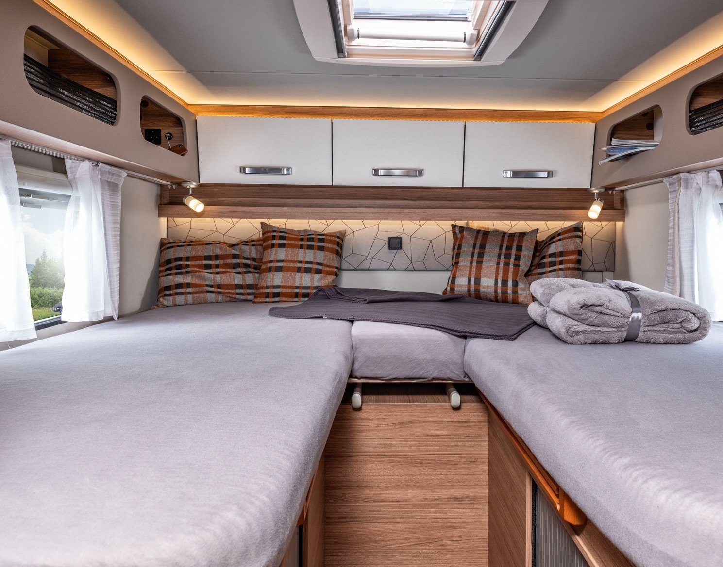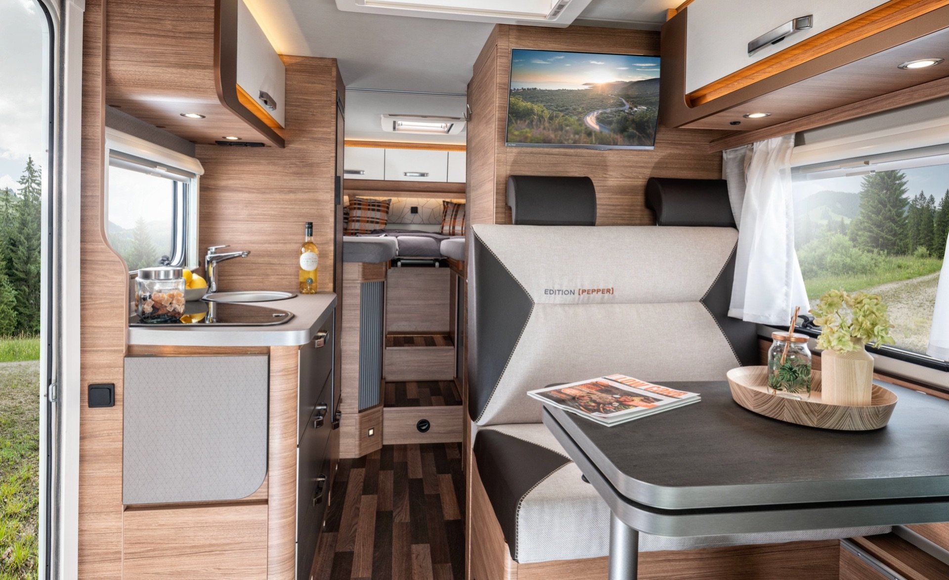 | Fahrzeugausstattung | Heckgarage Lederlenkrad Markise Multifunktionslenkrad Navigationssystem Servolenkung Zentralverriegelung |
